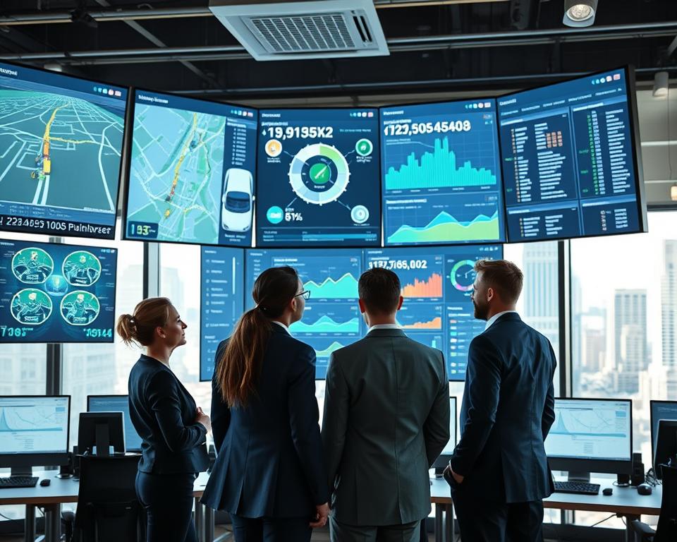 Data sensors and IoT devices are important for getting detailed info on vehicles. They track things like fuel use, engine health, and driver habits. This info helps improve fleet performance. For more on IoT in vehicle tracking, check out IoT Vehicle Tracking App Development.